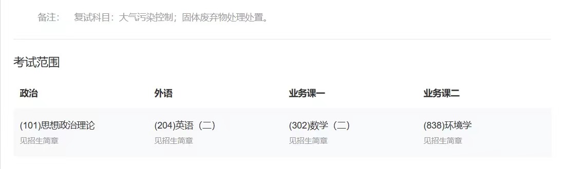 ①政治、②英语(学硕英一、专硕英二)、③数二、④环境学838(环境学导论+环境化学)
