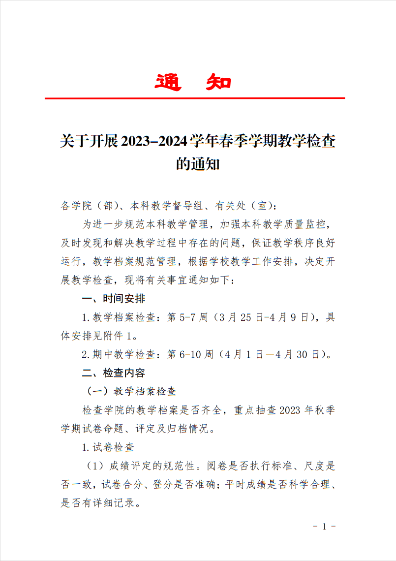 yl23455永利官网» 通知公告» 关于开展2023-2024学年春季学期教学检查的通知