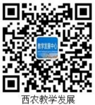 请拟参加培训的教师微信关注“西农教学发展”(二维码见下图),进行用户绑定(账号:校园网账号,密码:校园网密码),按照“教发中心-培训列表-‘相应培训主题’-报名”路径进行报名(详细流程见附件)。