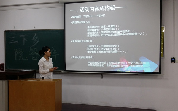今年是中国人民抗日战争暨世界反法西斯战争胜利70周年,“解红色精神下的秦腔风情??西北农林科技大学赴秦腔传唱地暑期实践服务团”以陕西特色文化形式、国家非物质文化遗产??秦腔为对象,分别从秦腔红色历史溯源、文化产业发展、民族文化传承三方面进行走访调查。
