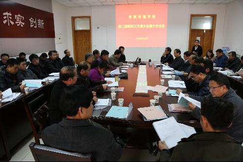 1月6日,yl23455永利官网在学院第一会议室召开第二届教职工代表大会第六次会议。学院在校教职工正式代表、教授委员会成员、民主党派负责人、院团工委、本科学生会、研究生会等特邀代表、党政综合办公室科级以上干部共46人参加了会议,校党委纪检监察室同志到会,大会由学院党委书记闫德忠主持。