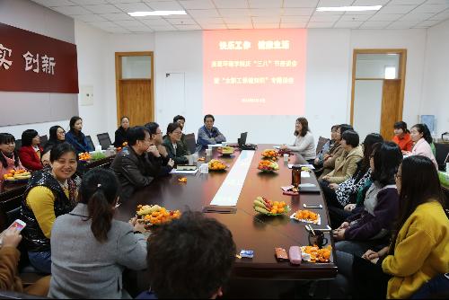3月4日下午在学院第一会议室,为全体女教职工举办了“快乐工作,健康生活”为主题的座谈会,党委书记闫德忠出席并代表学院领导班子和全体男同志向大家致以节日祝贺。闫德忠在致词中讲到,2015年学院的各项工作成绩是全体员工共同努力的结果,更是全院女同志付出辛勤汗水的成就,女同胞们把自己的力量和爱心献给了家人,把勤奋和智慧献给了学院,是学院美丽的凤凰,是我们的骄傲。座谈中,大家热情交流,气氛和谐,积极为学院的发展建言献策。