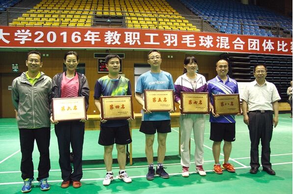 5月12日晚,学校2016年教职工羽毛球混合团体比赛在南校区体育馆胜利落幕。yl23455永利官网羽毛球代表队经过为期5天10个场次的激烈角逐,全体参赛队员奋力拼搏,最后勇夺全校2016年羽毛球团体赛第四名,这也是时隔多年后yl23455永利官网重回种子队行列的辉煌战果!