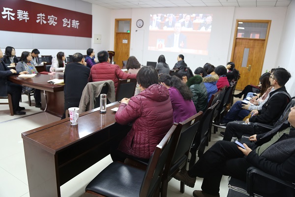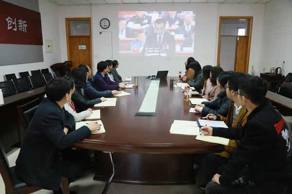 学院党委闫德忠感言到:和学院师生一起全程收看李总理的报告,强烈感受到报告务实接地气,关注老百姓的民生大事,善解民意、句句走心,从会场的阵阵掌声,给我们传递的是对中国发展的信心。报告给大家描绘了2019年的发展蓝图,强调全面深化改革,坚持发展是硬道理,贯彻新发展理念,实现更高质量、更有效率、更加公平、更可持续的发展。作为基层党委书记,要在学校党委的领导下,认真学习贯彻会议精神,精心谋划学院健康发展。