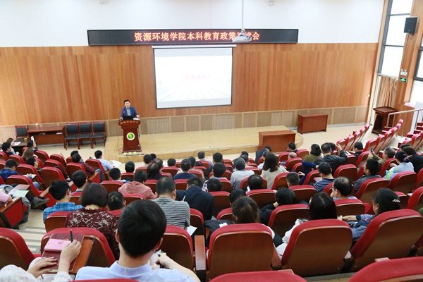 为紧跟学校教育教学综合改革步伐,加快一流本科教育、一流本科专业建设,做好教育部一流专业“双万计划”申报工作。5月15日下午,yl23455永利官网在学院报告厅开展“资环讲堂”活动,将政治理论学习与业务培训相互融合、相互促进,特邀教务处副处长李论就“2019年学校重大教学改革事项解读”作专题报告。报告会由学院副院长王健教授主持,学院党政领导和无课教师100余人参加了培训学习。