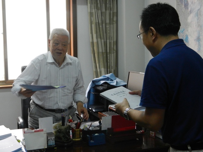 在赵院士办公室,吕家珑院长向赵院士汇报了学校及学院的发展情况,以及面临国家科技体制改革和十三五规划等问题学校和学院所做的一些工作情况。赵院士对学校及学校院的发展表示肯定,并从国家层面谈了当前资源与环境方面的形势,希望学校和学院抓住机会,为国家的资源环境事业做出更大贡献。赵院士说,他很希望为学校和学院做更多的工作,但由于年事已高,行动不方便,一些具体的活动(如:培养研究生、参加评审或论证会议等)就不参加了;但还会一如既往的关注和关心学校和学院的发展。