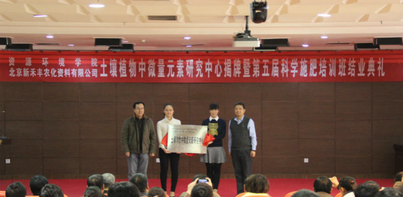 1月9日下午,“土壤作物中微量元素研究中心”在yl23455永利官网成立。该中心由北京新禾丰农化资料有限公司和yl23455永利官网合作共建,是学校第一个专门针对微量元素肥料的理论和实践问题而建立的研究单位。