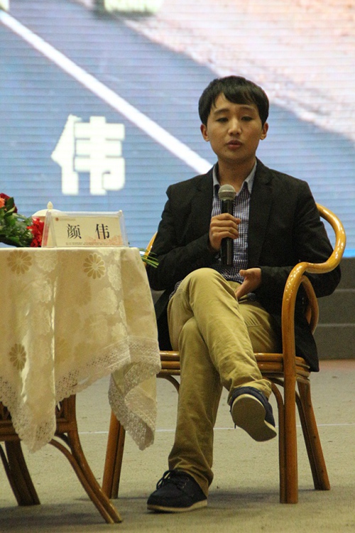 在谈及自己的生活经历和在校期间的创业经历时,颜伟总是以他坦诚随和的语言,乐观自信的态度,将一个个充满辛酸和困苦的故事讲得轻松快乐,他所表现出的品行和精神感染了在场的每一个人。