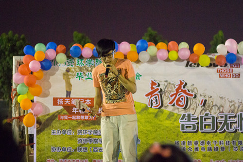 歌会以“青春,告白无悔”为主题,为毕业生提供了一场用歌唱致师长、密友、兄弟、青春的“告白”盛会。歌会节目青春昂扬又温情暖暖,一只青春街舞拉开了歌会的序幕,乘着叶片往前飞的《蜗牛》、燃点真自我的《红日》、日子都将远去的《同桌的你》、活得潇潇洒洒的《当》、舞蹈《老照片》等31个节目,一首首熟悉歌舞点燃了现场观众的无限激情,展现出了毕业生们的多才多艺的青春风采,博得现场观众的阵阵掌声。歌会期间还穿插了真情告白环节,毕业生积极踊跃参与,一对毕业研究生情侣在告白环节中温情的宣布了他们的婚期,获得现场观众的集体祝福。整场歌会还吸引许多其他学院的同学参与其中。