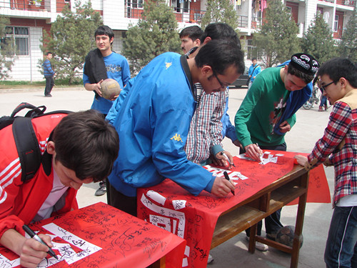 3月23日,由yl23455永利官网和杨凌气象局合办的“节能减排,防范雾霾”世界气象日宣传活动中午在yl23455永利官网北校区西区雕塑下举办,下午在东区超市西侧展示宣传板,学校广大师生纷纷前来参与活动并争先在宣传条幅上签字。