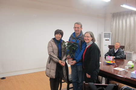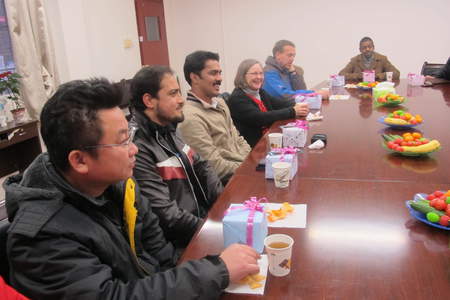 田霄鸿副院长首先代表学院对外籍教师Jeff和夫人以及全体留学生致以节日的祝福,并总结了yl23455永利官网过去几年留学生教育方面取得的成果,并向Jeff夫妇和各位留学生导师的辛勤工作和尽心付出表示感谢。yl23455永利官网研究生院培养处王玉环副处长将精心准备的节日礼品和鲜花亲手送给Jeff夫妇。王宏武书记和吕家珑院长向各位留学生和留学生导师送上了学院的新年礼物。座谈会上,各位领导、留学生导师和Jeff先生、Jeff夫人及留学生进行了亲切的交谈,就留学生培养、管理和生活等问题充分交换了意见。与会人员纷纷表示将更加努力做好留学生教学管理和指导工作,为学院和学校加强国际交流作出贡献。