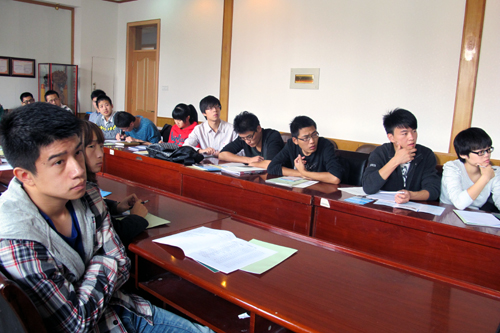 招生宣传小组每到一所高校,都是先由资深导师给相关专业大四、大三学生作专题报告,重点介绍学院师资力量、各专业实力、科研优势,以及2013年各专业研究生招生目录、研究生在学期间能享受到的各项资助、专业发展现状及前景、就业和出国留学情况等,解答学生困惑,随后其他小组成员根据学生提问进行补充。由于准备充分,师生互动频繁,现场气氛热烈,受到了所在高校师生广泛关注。