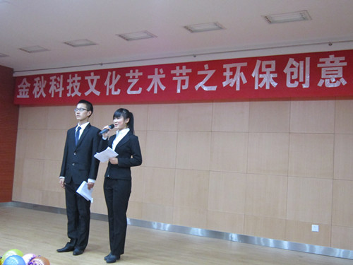 环保创意大赛于十月上旬拉开序幕,比赛中期特邀专家面向全校学生做了以环保在我们身边为主题的环保知识培训,经过层层选拔共有18支队伍入围决赛。参赛作品包含“环保手工”类、“环保概念”类、“环保宣传”类,评委根据参赛作品的实用性、环保创意性、成本价格等为作品打分,每类作品设一、二、三等奖各一名。本次比赛通过人人网同步开通了作品投票,设置最佳人气奖。