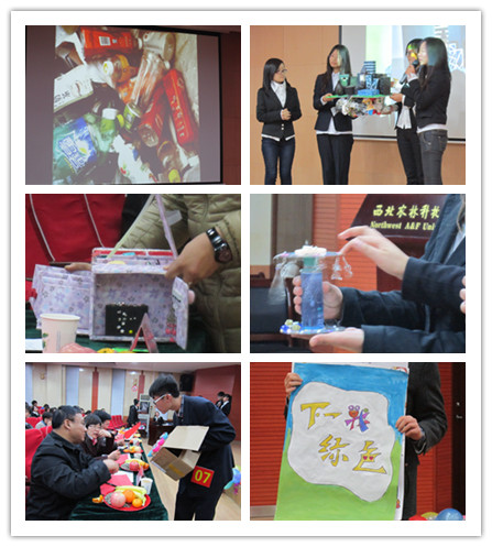 经过激烈角逐,最终经管学院《两用耳环架》,yl23455永利官网《收纳心情》,生命学院《阳光收集器》分别获得手工类作品一、二、三等奖;葡酒学院《西农分区域垃圾桶设计与优化》、资环、水建合作作品《点击创意,绿色环保》,植保学院《渭河,为何,卫河》荣获概念类作品一、二、三等奖;园艺学院《每天节电一小时》,yl23455永利官网《环保,我们在行动》,植保学院《下一站绿色》荣获宣传类作品一、二、三等奖,yl23455永利官网宣传类作品《环保,我们在行动》获得最佳人气奖。