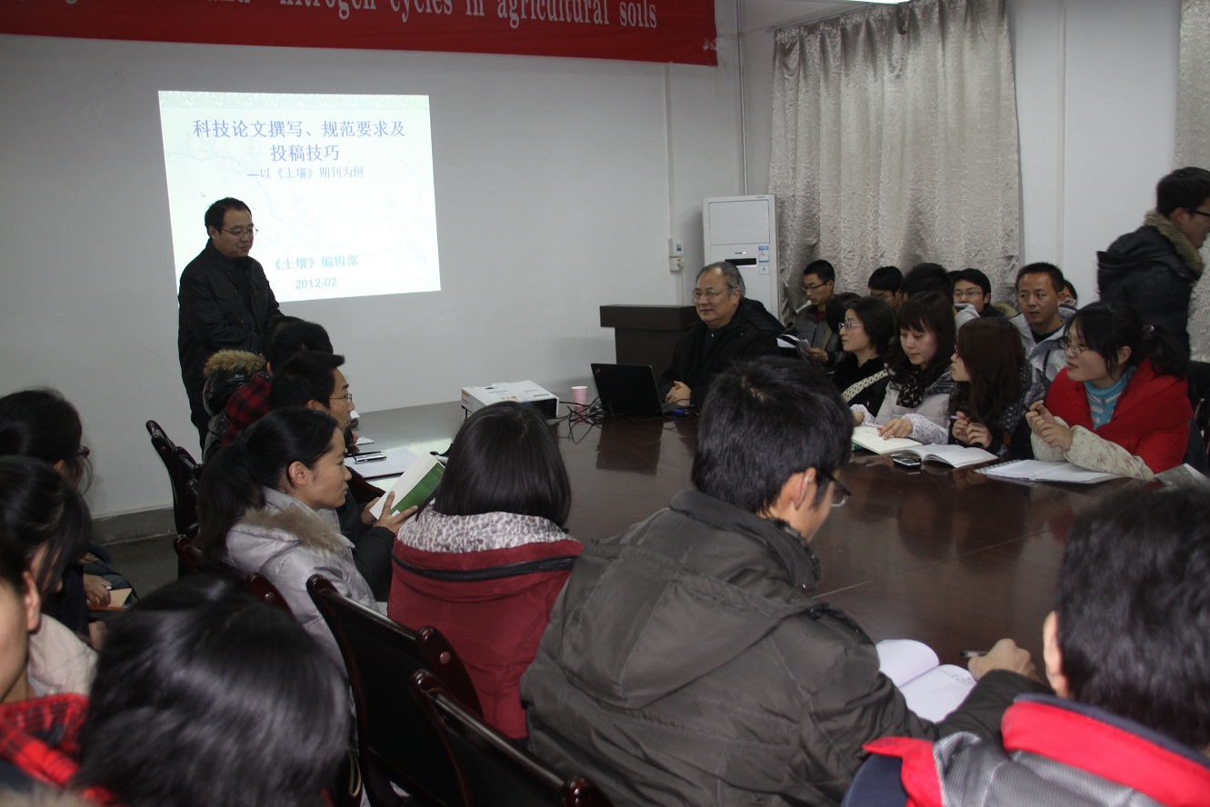 2012年2月24日上午,在yl23455永利官网第一会议室,《土壤》杂志编辑部主任周德智研究员做了题为《科技论文撰写、规范要求及投稿技巧 》的学术报告,yl23455永利官网师生60多人参加了报告会,高亚军副院长主持会议。 在报告会上,周德智研究员详细地讲述了科技论文特征及分类、科技论文写作步骤、科技论文格式要求、科技论文写作和投稿应该注意的几个问题、投稿技巧等问题。周德智研究员渊博的知识和精彩的报告赢得了广大师生热烈的掌声和一致好评。 会后,yl23455永利官网部分师生与周德智研究员就如何投稿等相关问题进行了进一步探讨和交流。